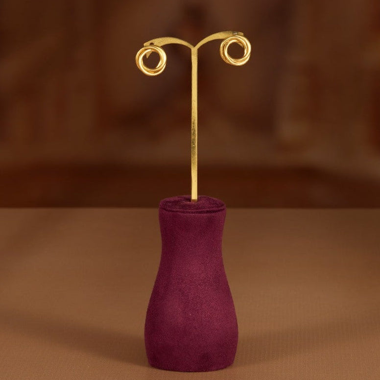 These striking Sculptural earring features an abstract, double-looped or coiled motif that sits perfectly on the earlobe. The design relies purely on its three-dimensional shape and flawless finish for its visual impact.