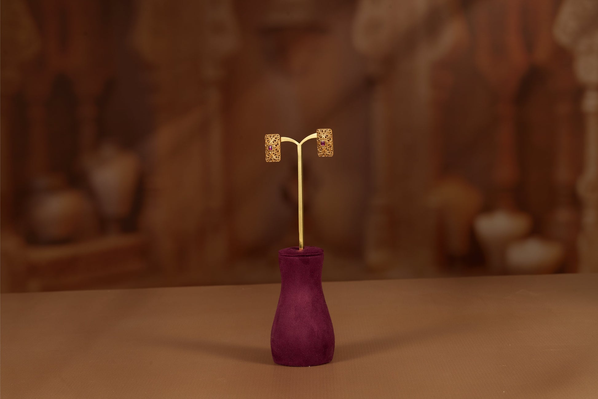Capture the timeless architectural beauty of heritage design with The Mughal Lattice Choker Set. This graceful jewelry set includes a structured choker necklace and matching stud earrings. The design features elegant, modular square links with an intricate filigree pattern. Each link is accented with tiny, alternating ruby-like red and emerald-like green semi-precious stones, adding a subtle yet rich pop of color.